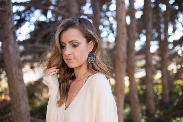 These deco earrings are a Baubles by B exclusive statement earrings. Lightweight wood and acrylic in eye catching shapes make these a stunner