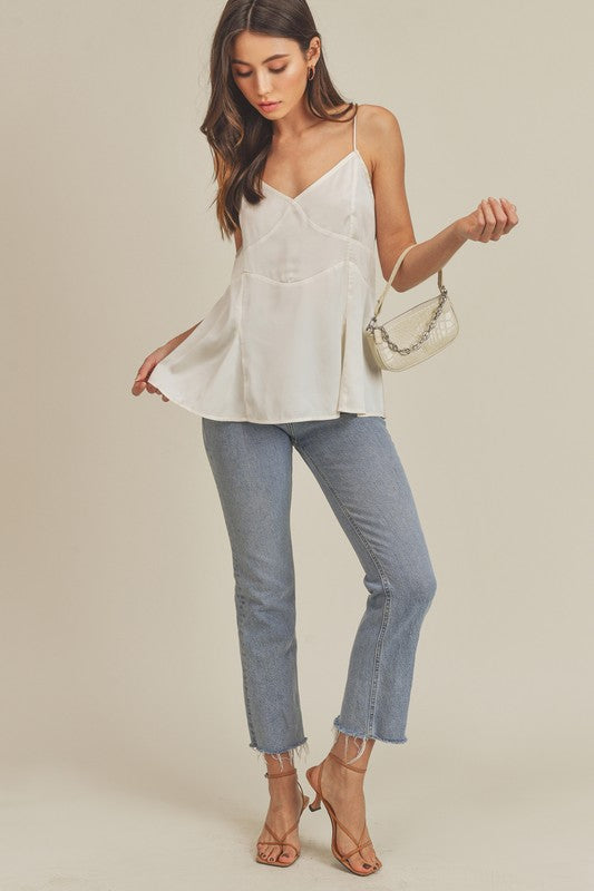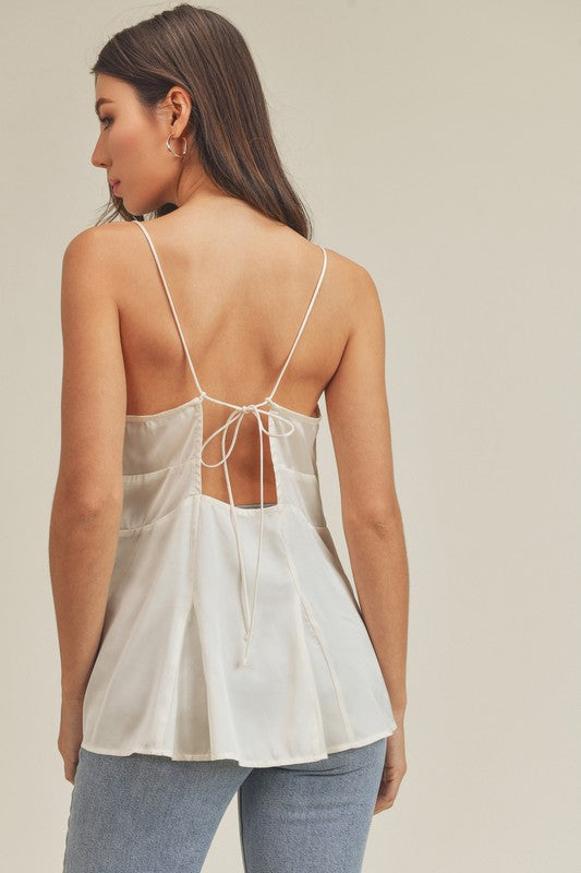 So sultry and femme, the Moon Tie Tank will turn heads with her silky peplum bottom and open tie-back closure in our most soft fabrication.